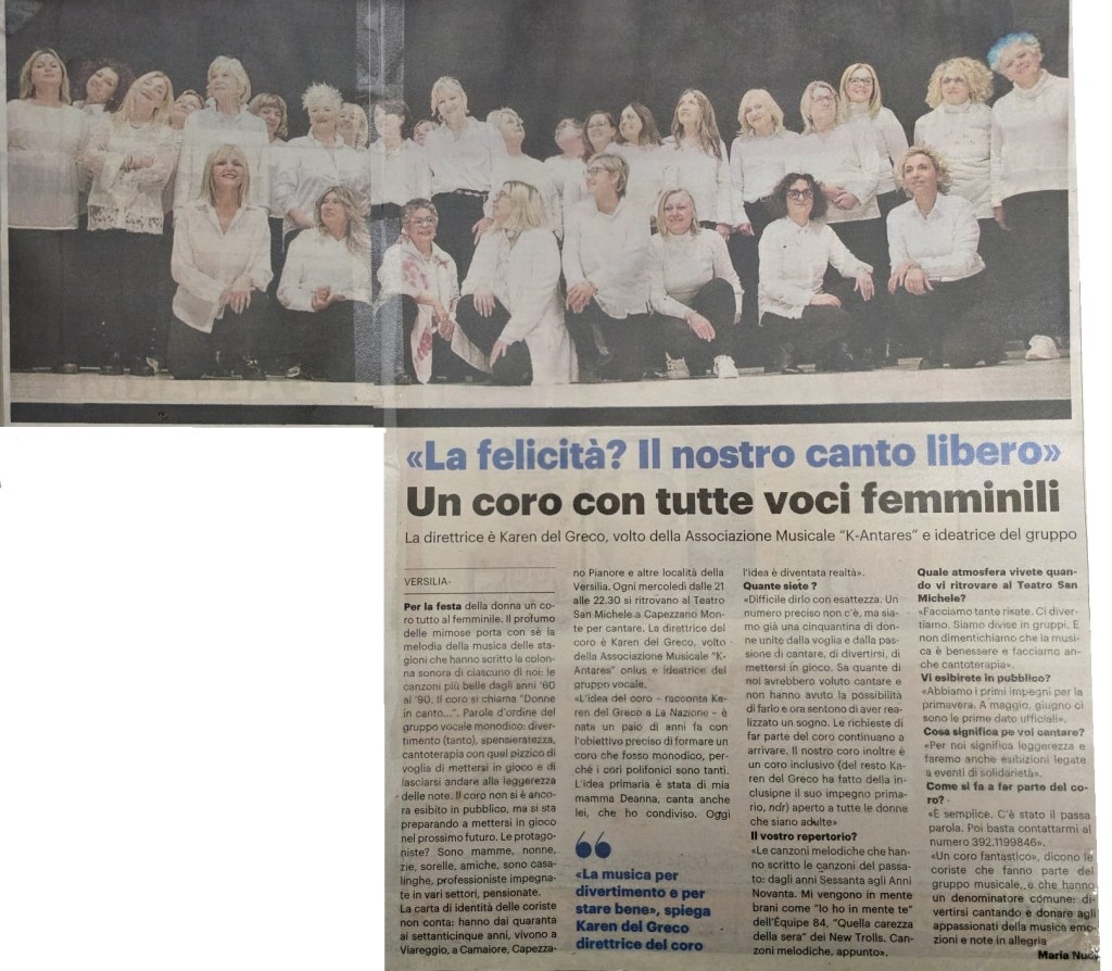 Gruppo Vocale monodico nato nel febbraio del 2024 formato da ottanta donne unite nel divertimento e nella passione per il canto. Il repertorio spazia nella musica italiana ed internazionale dagli anni ’60 agli anni ’90. Direttrice del coro: Karen del Greco.